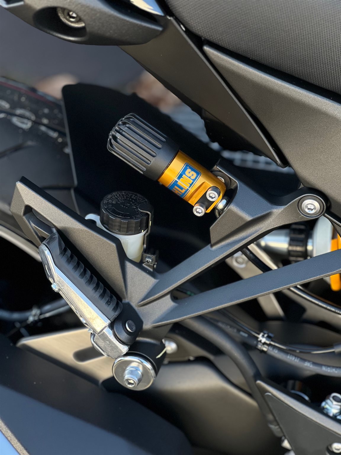 Das hochwertige Fahrwerk mit elektronisch geregeltem Showa-Fahrwerk (SE-Ausführung) garantiert höchste Stabilität, präzises Handling und optimalen Fahrkomfort in jeder Situation. Leistungsstarke Bremsen mit ABS sowie moderne Assistenzsysteme sorgen für maximale Sicherheit und Kontrolle.